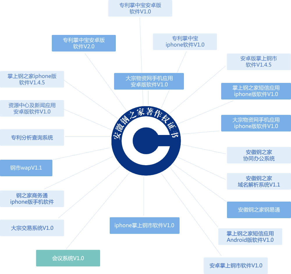 安徽钢之家与马鞍山知识产权局保持着长期紧密的合作。2012年12月,在市知识产权局的指导下,成功开发了“专利掌中宝”移动专利执法系统及马鞍山市区域专利数据库检索平台等项目。2013年12月,公司将主要技术力量投入到专利数据库分析平台研发上,积极开发“基于云计算专利数据库分析系统”,为马鞍山本地企业“泰尔重工”和“华菱星马汽车”定制开发了符合企业特色需求的专利分析平台。