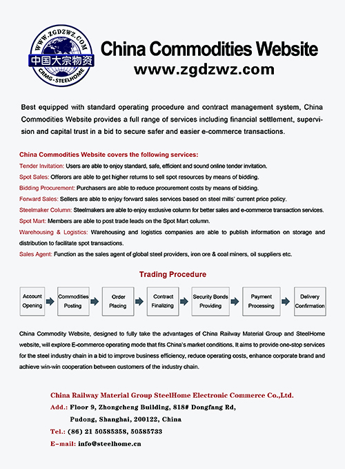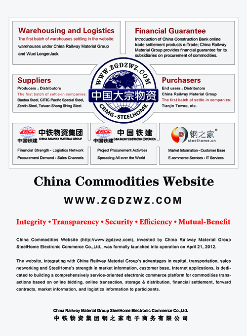 为中铁物资集团钢之家电子商务有限公司开发建设的“中国大宗物资网”,依托中铁物资集团的资金实力、物流网络、物资采购需求和销售渠道等,借助上海钢之家网站系统全面的市场资讯、客户资源、商务服务、网络技术等优势,引入现代通信、互联网和云数据等技术,为大宗商品产业链用户打造集网上现货交易、工程物流、招投标、在线洽谈、在线支付、供应链融资、仓储物流配送以及市场信息、网络技术为一体的全方位、综合性大型电子商务平台。